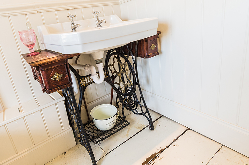 We decided to mount the wash basin on an old Singer sewing machine stand to add a bit more character to the bathroom as the customers wanted something unique and a little different. We hear it is now the most remarked upon item in the house after the bath!